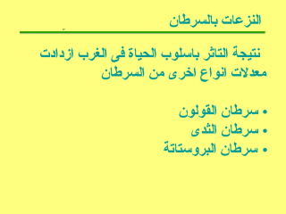 في نفس الوقت، العالم النامي يواجه الزيادات في ثلاثة انواع من السرطان تعلّقت بتبني أسلوب الحياة الغربي – سرطان القولون ، الثدى والبروستاتة. كما نعرف، هذه السرطانات على الأقل جزئيا سببها التغييرات في الغذاء، النشاط الحركى و تغير انماط الحمل بالطبع، اكثر سلوك صعوبة حاليا بالغرب هو التدخين |