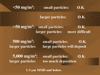 Consult the following article for problems related to achievable aerosol exposure concentrations with realistic particle size: Recommendations for the conduct of acute inhalation limit test. Fund. Appl. Toxicol. 18, 321-327, 1992.