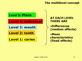 (INDIVIDUAL) there is a mean caries status for all the individuals (FIXED EFFECT), but