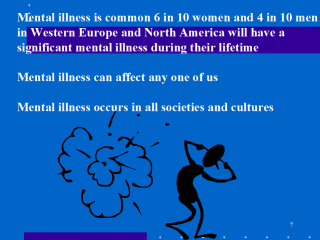 At any one time 300-400 million people in the world have a significant mental illness i.e. 5%.