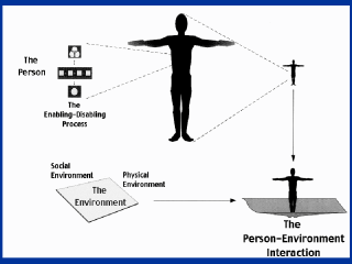 Medicine Model In this model, the person with the impairment is the focus. - The person must always be considered in the context of "environment." - The environment is a mat. - Environment is both physical and social. |