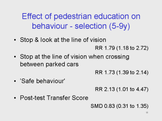 used to measure the effetiveness of pedestrian education on behaviour. - We reported dichotomous outcomes as relative risks and continous outcomes as standardised mean differences. |