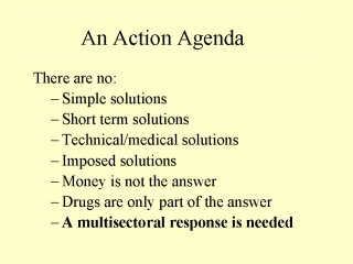 The overarching message to take home is that HIV/AIDS is not simply a public health problem - the epidemic demands a committed and innovative multisectoral response if we are to combat the disease.