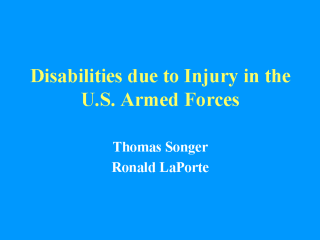 data sources for injury prevention. Readings: Songer TJ, LaPorte RE. Disabilities due to Injury in the Military. American Journal of Preventive Medicine 18(3S):33-40, 2000. Atlas of Injuries in the U.S. Armed Forces. https://www.denix.osd.mil/denix/Public/Library/Atlas/atlas.html |
