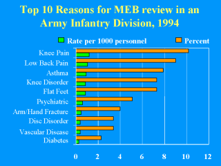 were 83 MEB reviews due to injuries (47%), 88 MEB reviews due to illness (50%), and 5 MEB
