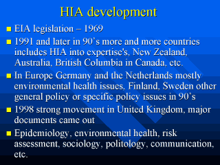 countires. Health impact assessment began to develop as a separate methodology in 90’s