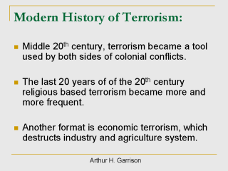 | Arthur H. Garrison, How the World Changed: a History of the Development of Terrorism, presented at Delaware criminal Justice Council Annual Retreat, Oct 28-29, 2001 |