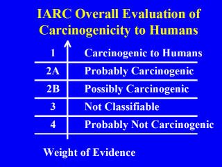 IARC: International Agency for Research on Cancer IARC Monographs Programme on the Evaluation of Carcinogenic Risks to Humans Weight of evidence technique by expert panel is used.