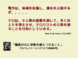 しばしば、私たちは実際にテロを定義せずに、テロについて話します。テロは戦争ではないこと、戦争と目的が異なることを認識する必要があります。殺傷は一義的な目的ではなく、テロ行為により、人々に恐怖を与え、テロリストの主張を通すことを目的としています。