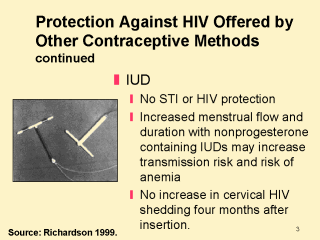 HIV acquisition in IUD users. Also, the increased menstrual flow and duration seen in
