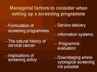 concentration only on the technical aspects of the screening. The intention of the WHO