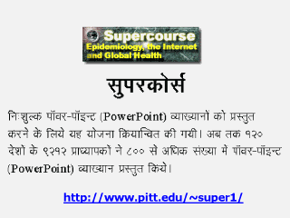 | The lecture has been developed by Supercourse team for the Global Health Network. It was translated to Hindi by Amita Mehta. The Supercourse is an international program designed to bring the Internet into the prevention of Terrorism and all forms of disease. |