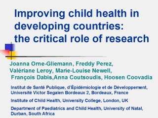 study undertook early 2001. Study commissioned by the Global Forum for Health Research at the WHO: asked us to review over the past 10 years the role of research in improving child health and nutrition in developing countries. |