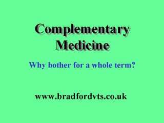www.bradfordvts.co.uk Bradford VTS Web Pages for General Practice ONLINE RESOURCES Non-clinical Tutorials for GP Registrars ALLIED SERVICES & COMPLEMENTARY MEDICINE