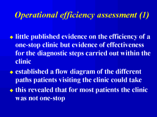 There are 2 consultants who provide a service throughout the clinic. Mr Appleyard’s patients in the main get a one-stop service because they are fewer in number and the radiology department has the capacity to be able to give them an ultrasound scan on the same day as the clinic. Mr Shaikh sees too many patients (Maximum 12) for the radiology department to cope with. His patients have to have another appointment made for the ultrasound examination (with a waiting list of several months). Occasionally GPs had not initiated blood and urine tests and so the results were not available when the patients attended clinic. This is a minor problem compared to the ultrasound and is easily resolvable by writing to GPs and reminding them. |