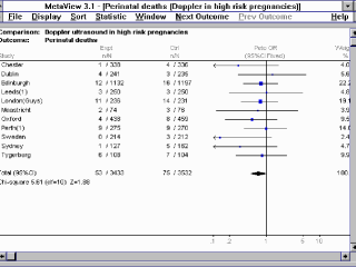 in the meta-analysis. Pull down menus can change scales, statistic shown (odds-ratio or relative risk), etc. |