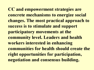 | But government actions such as social policy development and implementation are the best way to reduce the burden of poverty and other social exclusion causes. Communities should be empowered to demand from all levels of government-through non-violent means-the adoption of such policies and their continual application. |