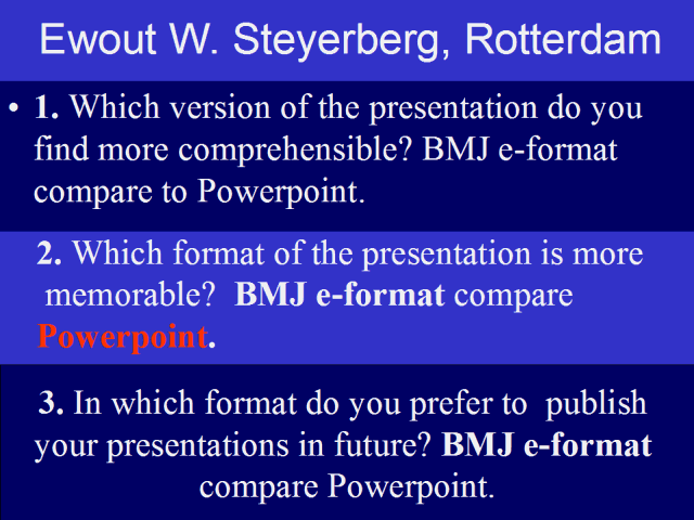 Further, I enjoyed both forms of presentation, with more humour in the ppt presentation (e.g. horses/cars in time). Ppt also is more memorable. Ewout W. Steyerberg, PhD, Clinical epidemiologist, an author of Supercourse’s lecture «Validation of predictive regression models». |