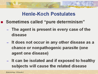 | …then it can no longer be a random accident of the disease, but between the parasite and the disease can be conceived no relation except that the parasite is the cause of the disease -- Robert Koch (1890) |