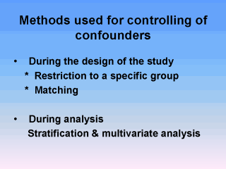 | Both restriction to a specific population group or matching to a certain group will minimize the effect of potential confounding variable. But it will restrict the sample size to a specific group and so the sample size has to be enlarged enough to have the optimum power of the study which means more expenses and more time will be needed. |