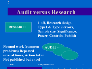 “audit, one at a time” but although there is overlap Audit and research are