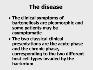 Maguina C, Garcia P, Gotuzzo E, Spach D. Bartonellosis (Carrion’s disease) in the modern era. Clin Infect Dis 2001; 33:772-779.