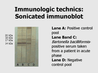 al. Sonicated diagnostic immunoblot for bartonellosis. Clin Diagn Lab Immunol 2000; 7:1-5.