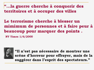 | Often we talk about terrorism, with our really defining it. Terrorism is not warfare, the goals are different. Terrorists want to seed a political message into our minds, murder, and violence are secondary. Hitchcock is a perfect spokesperson for terrorism as he is the master of terrorism. Terrorist make us afraid, which makes them heard. |