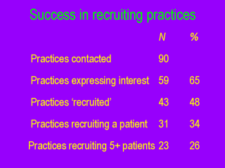 Only a quarter of the 90 general practices contacted for the dyspepsia trial actively participated (that is, recruited 5 or more patients).