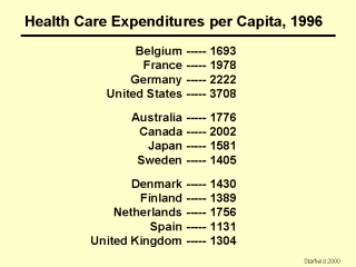 expenditures are greater the weaker the primary care. In the poor primary care group, all but one country has expenditures over 20,000 US dollars per capita. In the middle primary care group, expenditures were between 15,000 and 20,000 US dollars per capita. In the good primary care group, all but one country had expenditures of less than 15,000 US dollars per capita. |