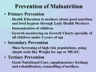 All mothers of malnourished children must be counselled, about proper nutritional care of the child, importance of breast feeding, proper and healthy weaning practices, benefits of immunization, and growth monitoring.