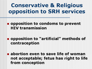 All these, then, are problems affecting provision of SRH services before we even begin to consider health sector reforms.