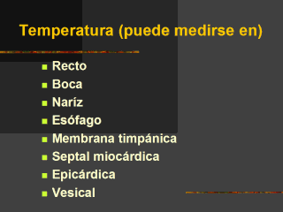 oxígeno de todo el cuerpo. La temperatura puede medirse en recto, boca,