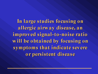 | As the syndrome of asthma reflects a collection of disease subgroups which may involve different causal pathways (e.g. viral inflammation, house dust mite allergen-induced airway disease), the use of an outcome measure of ‘wheeze’ or ‘asthma’ may be too non-specific for aetiological studies. |