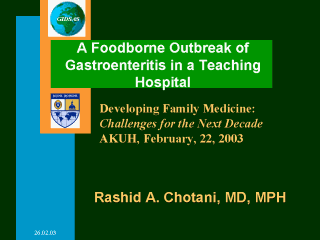| Rashid A. Chotani, MD, MPH Assistant Professor & Director Global Infectious Disease Surveillance & Alert System (GIDSAS)Center for International Emergence, Disaster & Refugee Studies Johns Hopkins Schools od Medicine & Public Health Phone: 410-614-8330 E-mail: rchotani@jhsph.edu |