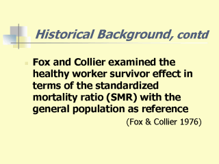 Trying to measure the magnitude of HWE, fox and collier used Standardized Mortality ratio.