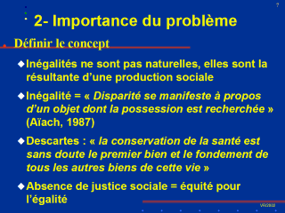 Pour le dire autrement, les disparités devant la mort et la maladie sont l’aboutissement d’un mécanisme cumulatif (Aïach & Cèbe, 1994) d’injustices sociales dans lesquelles les « faiseurs » de politiques publiques se complaisent tant et autant qu’ils n’auront pas décidé de remettre en cause cet état de fait. Fassin, D. (1996). L'espace politique de la santé, essai de généalogie. Paris: Presses Universitaires de France. Aïach, P., & Cèbe, D. (1994). Les inégalités sociales de santé. La Recherche, 25(261), 100-109. |