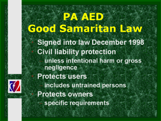 Pennsylvania (PA) law protects anyone who use AED includes untrained persons.