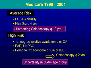 proximal cancer, Medicare announced they would cover colonoscopy once every ten years.
