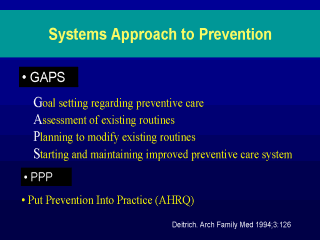 a way of incorporating prevention into primary care offices. Deitrich, who is at