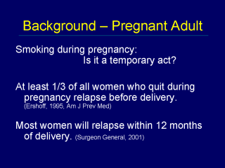 least a 1/3 of all adult women who attempt to quit during pregnancy will relapse before