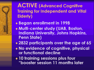 ACTIVE is the Advanced Cognitive Training for Independent and
