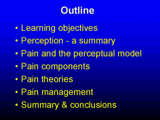 By the time you have viewed this lecture, you should be able to give a perceptual explanation of the concept of pain.
