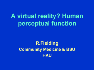 and a few rules of course. This lecture considers some of the features of the human perceptual system and why they are important in health care. In the 6th century, an Indian philosopher wrote the following description of the centrality of perception to life: “Whatever on thinks within oneself, that alone is experienced by him. To a man in great pain, a night is an epoch; and a night of revelry passes in a moment.” Vasishthaya. 6th Century AD. |