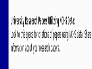 University Research Papers Utilizing NCHS Data: http://www.cdc.gov/nchs/about/otheract/Educators/unieducators.htm#University Research Papers Utilizing NCHS Data |