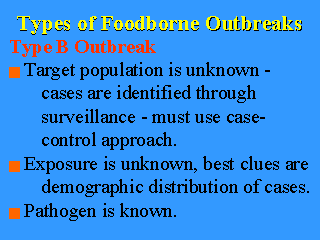 Examples of type B outbreaks include the recent E. coli O157 outbreaks in
