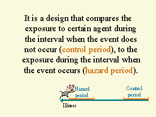We define the "case component" as hazard period which is the time period right before the disease or event onset; and the "control component" as control period which is a specified time interval other than the hazard period. The information of the individual "exposed to certain activity or agent during the hazard period and control period will be compared. If we collect such information from many subjects who had the disease or event, we can test for consistent relationships between the disease and the exposure.