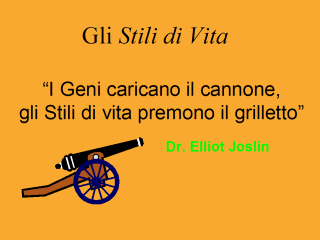 Gli Stili di Vita come fattori di malattia Nella prima metà del 1900 la gente era troppo impegnata a cercare di sopravvivere, per preoccuparsi della salute quanto facciamo noi oggi, o, ancora meno, dei comportamenti più salutari che potremmo tenere per prevenire alcune malattie. I progressi occorsi sono stati ottenuti attraverso l’attività dei sindacati nell'ambiente di lavoro, la legislazione, le disposizioni relative alla sanità pubblica. Verso la fine del secolo, nel 1990, il programma Salute per tutti nel 2000 costituì un richiamo a lavorare per una cultura che promovesse attivamente comportamenti responsabili e "l’adozione di stili di vita il più possibile orientati alla buona salute" (USDHHS, 1990). Sin da allora è sempre più evidente che una condotta sana ha la capacità di ridurre in misura importante il rischio di sviluppare malattie croniche. Dunque di tutti i determinanti della salute di cui si è discusso, gli stili di vita sono tra quelli più facili da controllare e insieme tra i più importanti per l’influenza che hanno sulla nostra salute. Autore: Diane Wilson, USA. Da: "Lifestyle Factors and the Prevention Movement" www.pitt.edu/~super1/lecture/lec4231/006.htm In più: l’uso di prodotti più sicuri, le cinture di sicurezza e i seggiolini per bambini in auto, l’attenzione alla sicurezza in casa, i sistemi antincendio eccetera hanno risparmiato un gran numero di vite e di infortuni, nel corso del XX secolo. |