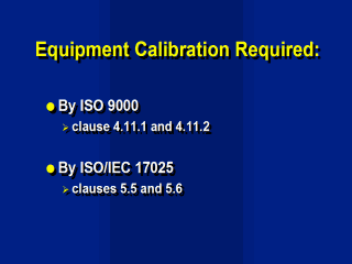 Calibration required by: ISO 9001: 1994 clause 4.11 species that: