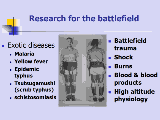 battlefield included a wide variety of studies. Work on exotic diseases,